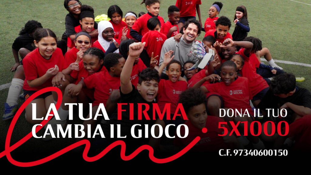 Milano, 25 aprile 2026 – “La tua firma cambia il gioco”. È questo il messaggio con cui Fondazione Milan rilancia e caratterizza la sua campagna 5×1000 per il 2026. Un gesto semplice ma importante: indicando il codice fiscale 97340600150 all’interno della dichiarazione dei redditi sarà possibile sostenere le iniziative benefiche della public charity rossonera a Milano, in Italia e nel Mondo.