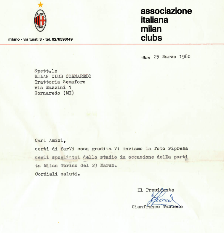 Il suo legame con i colori rossoneri era così forte che, nel 1979, diede vita a uno dei primi Milan Club dedicati proprio a Franco Baresi. Un gesto che parla di dedizione, ma anche di comunità: il Milan Club è diventato col tempo un luogo dove ritrovarsi, condividere emozioni, celebrare vittorie e sostenersi nelle sconfitte.